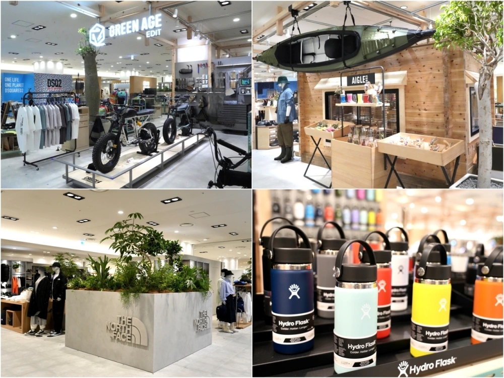 阪急百货店梅田总店8层新开业的GREEN AGE以人与自然共生为概念,提倡绿色环保的生活理念,集齐从潮流单品,食品和化妆品,到户外运动、Chloé、LOEWE等一系列奢侈品牌。